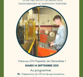 Notre CFA, spécialisé dans la filière papier-carton, a fait l’objet d’un bel article dans le quotidien Vosges Matin, dans le but de recruter nos futurs alternants. Nous vous invitons vivement à le lire dans son intégralité en suivant le lien ci-dessous. Article Vosges Matin